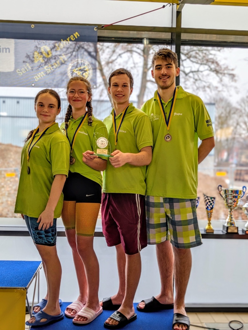 (Bild: 4x100 Lagen Staffel mit Lena Winter, Pauline Ballas, Niklas Winter und Pepe Kräter)