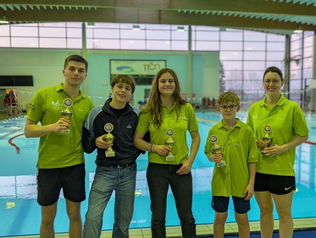 Erfolgreich waren sie auch in den Staffeln. Über 4×50 Freistil mix in 1:49,7 sowie 4×50 Lagen mix in 2:03,3 belegten die Wittenberger jeweils Platz 2 und mussten sich nur dem Gastgeber geschlagen geben.